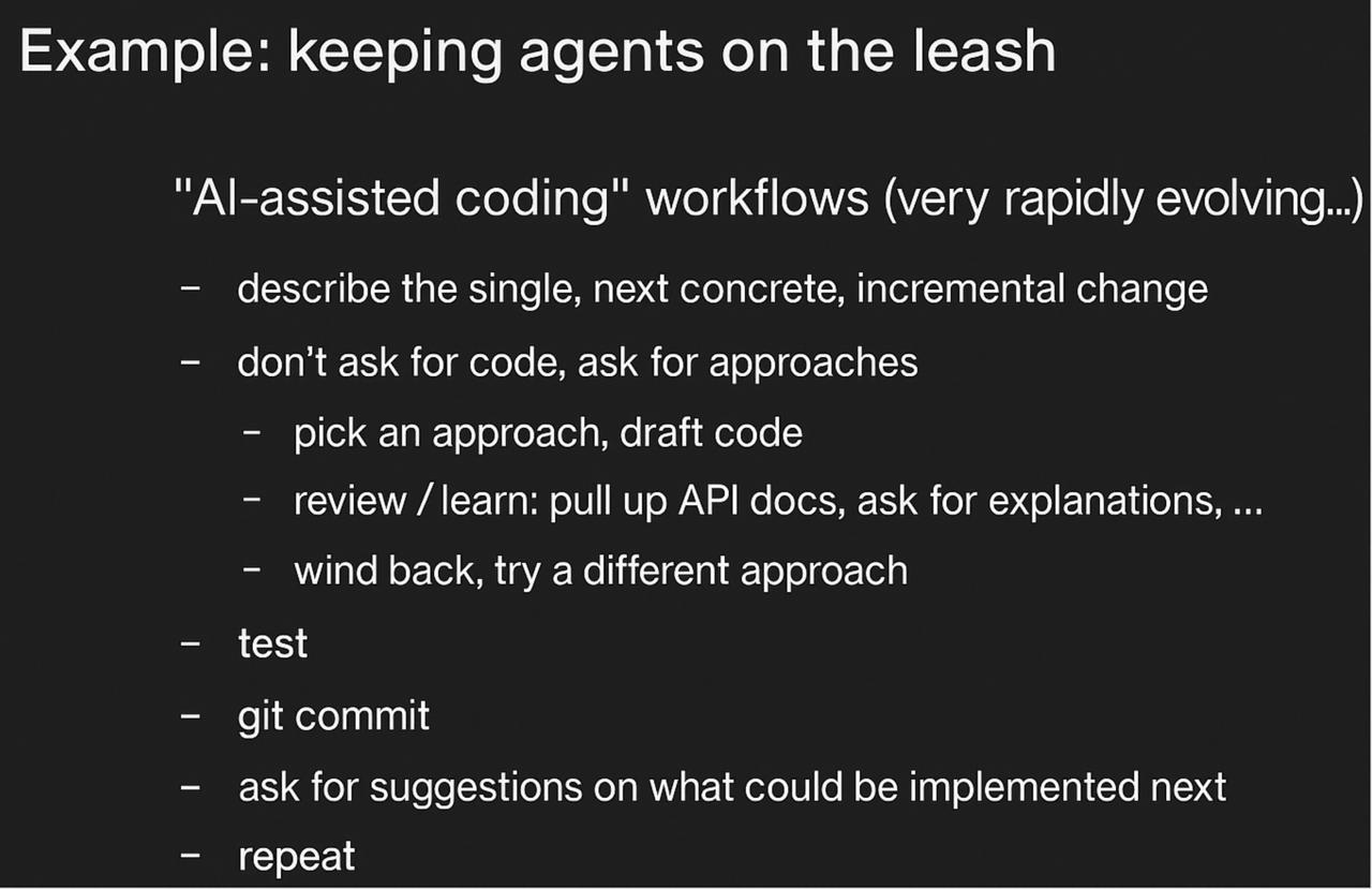 вот слайд, на котором он как раз описывает свой процесс разработки с ИИ.